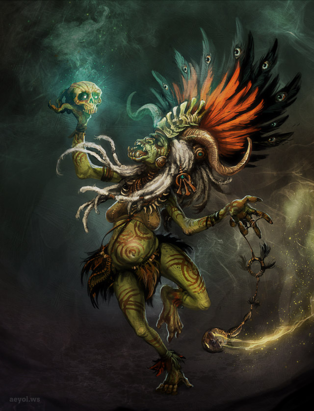 Was mich erstaunt, ist das Vorhandensein von Halbgolgori. Sie scheinen durch eine Vermischung von Golgori und diesen Wesen entstanden zu sein, die an der Südküste Ardceaîrs in den Bergen leben… die Scambar. Halbgolgori habe ich auch schon in den Wirtshäusern weiter im Norden angetroffen, und die meisten von ihnen verhalten sich ruhig – dennoch hört man immer wieder von halbgolgorischen Assassinen. Die Halbgolgori sind jedenfalls an ihrer schlanken, drahtigen Statur und ihren violetten Augen zu erkennen, die sie von den Scambar geerbt haben. Sie haben eine bleiche, blassgrüne Haut, die von Narben geziert ist. Eine geheimnisvolle Tätowierung, das Symbol des jeweiligen Stammes, schmückt ihre Stirn. Die Halbgolgori sind nicht so stark wie die Golgori, aber kräftig wie ein Menschenmann. Sie sind intelligent und oft tückisch, wie die meisten Diener Dar Morhocs, dem Herrn der Schatten. Allerdings ist nicht ihr ganzes Volk dem Schwarzmagier verfallen, sondern nur einige Fanatiker, die dem „Dunklen Kreis“ angehören. Dies ist eine Art Sekte, deren Mitglieder überwiegend Halbgolgori sind. Ihr nicht gerade hehres Ziel ist es, Heldentaten zu vergelten, indem sie Anschläge oder gar Meuchelmorde an tapferen Recken verüben, die für das Licht kämpfen. Immer wieder gelangen einige von ihnen nach Daaron, wo sie ihre Untaten verüben.